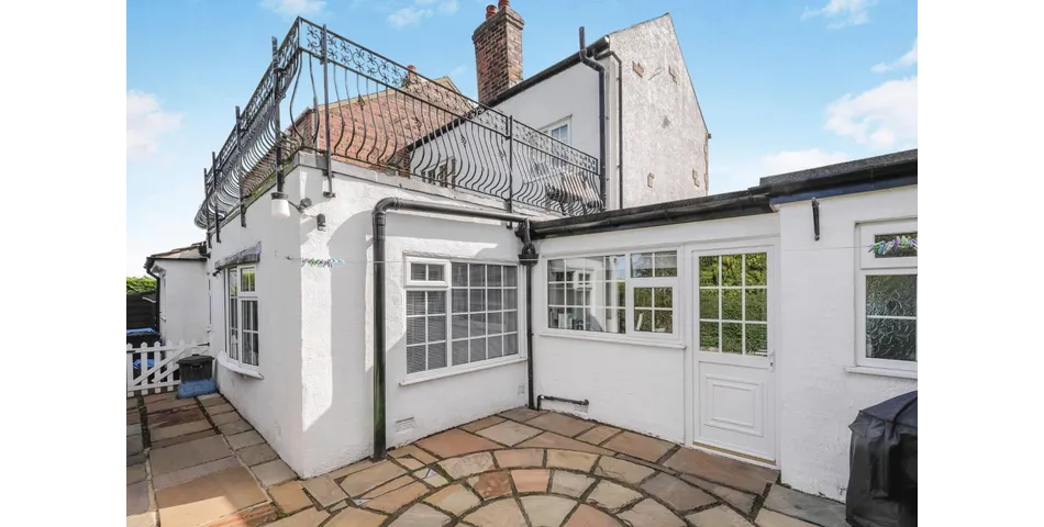 To the side of the dining room is a well-maintained kitchen, with a downstairs layout that also includes a good-sized double bedroom and a convenient WC. Upstairs, the property offers a large main bedroom and a family bathroom. From the landing, patio doors open directly onto a substantial balcony – a standout feature of this home, with wonderful views and plenty of space for entertaining or simply relaxing outdoors. At the rear, there is a courtyard garden, perfect as a private, low-maintenance outdoor area. Overall, the property is ready to move into but also offers huge potential for personalisation, making it a very appealing opportunity for a range of buyers.